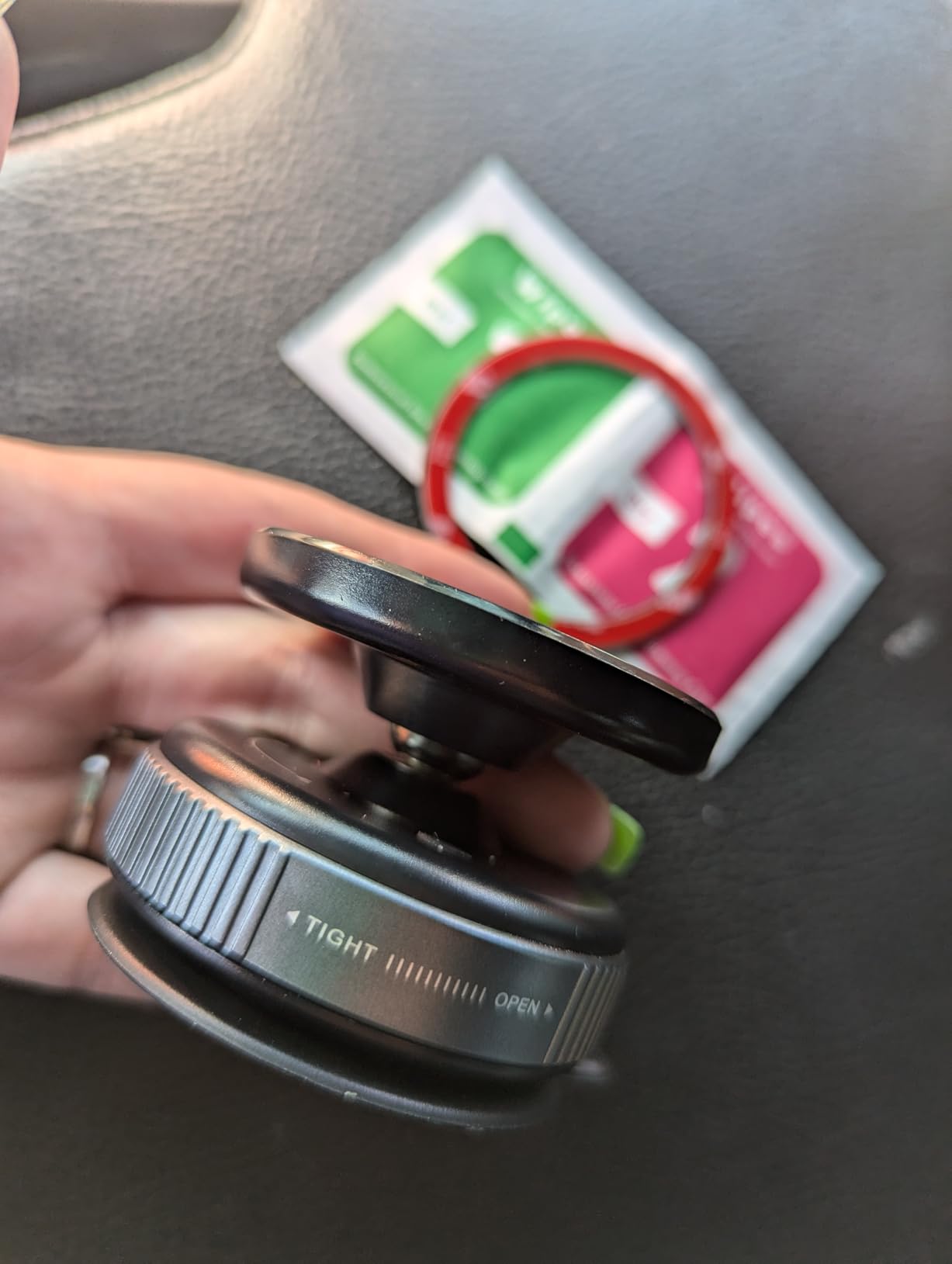 Not a bad device. I ended up placing it on the window as it does not stick well to the rough surface of my vehicle.Also, I need the metal ring (which I super glued on) because I have a heavy duty case on my phone so it doesn’t magnetize well.